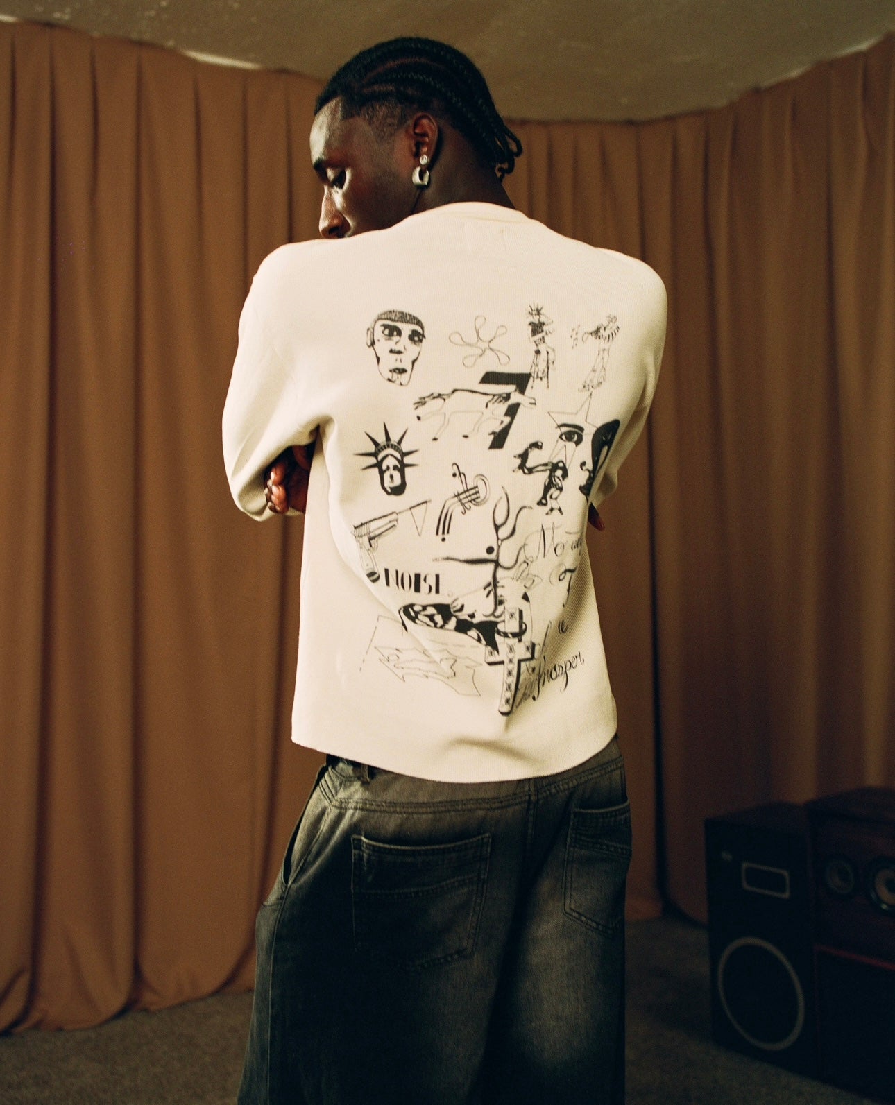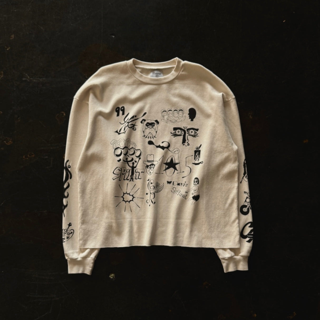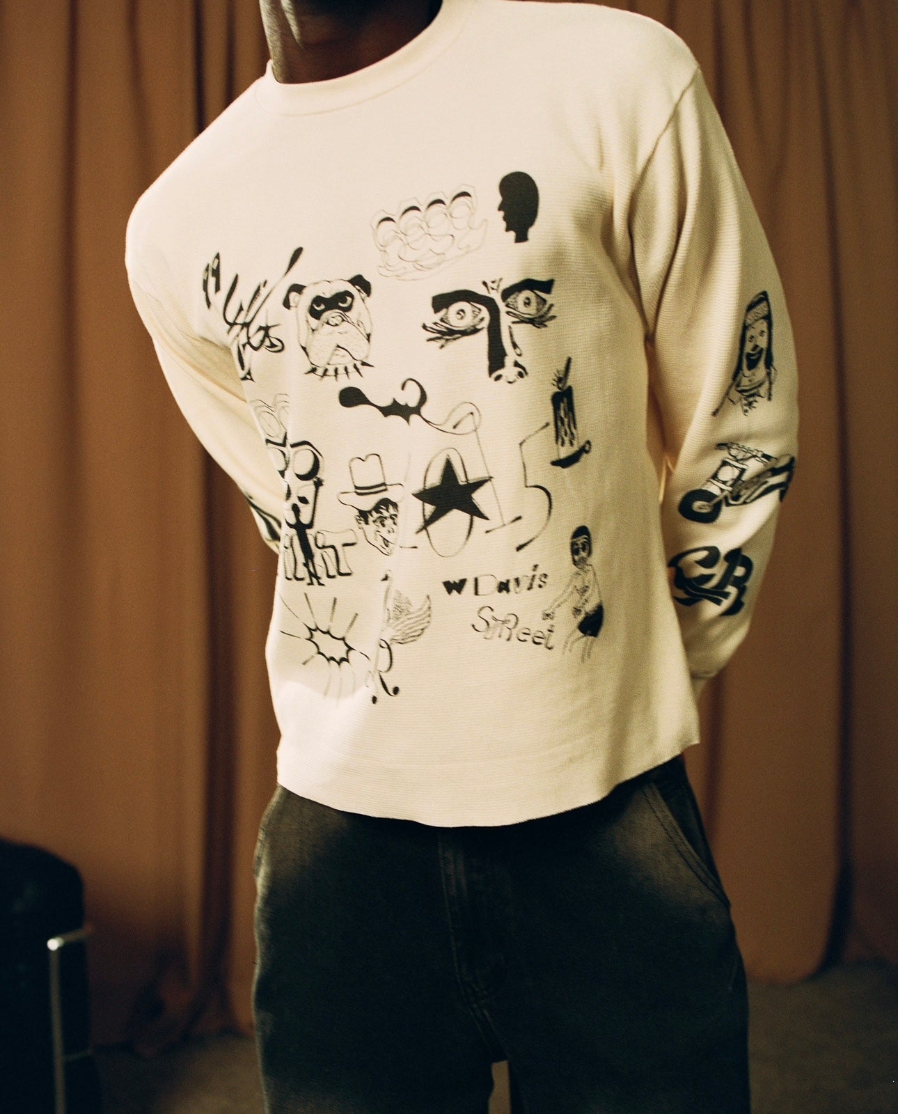 This thermal has a boxy fit and a hand crop at the bottom. This is to emphasize the boxier look.
